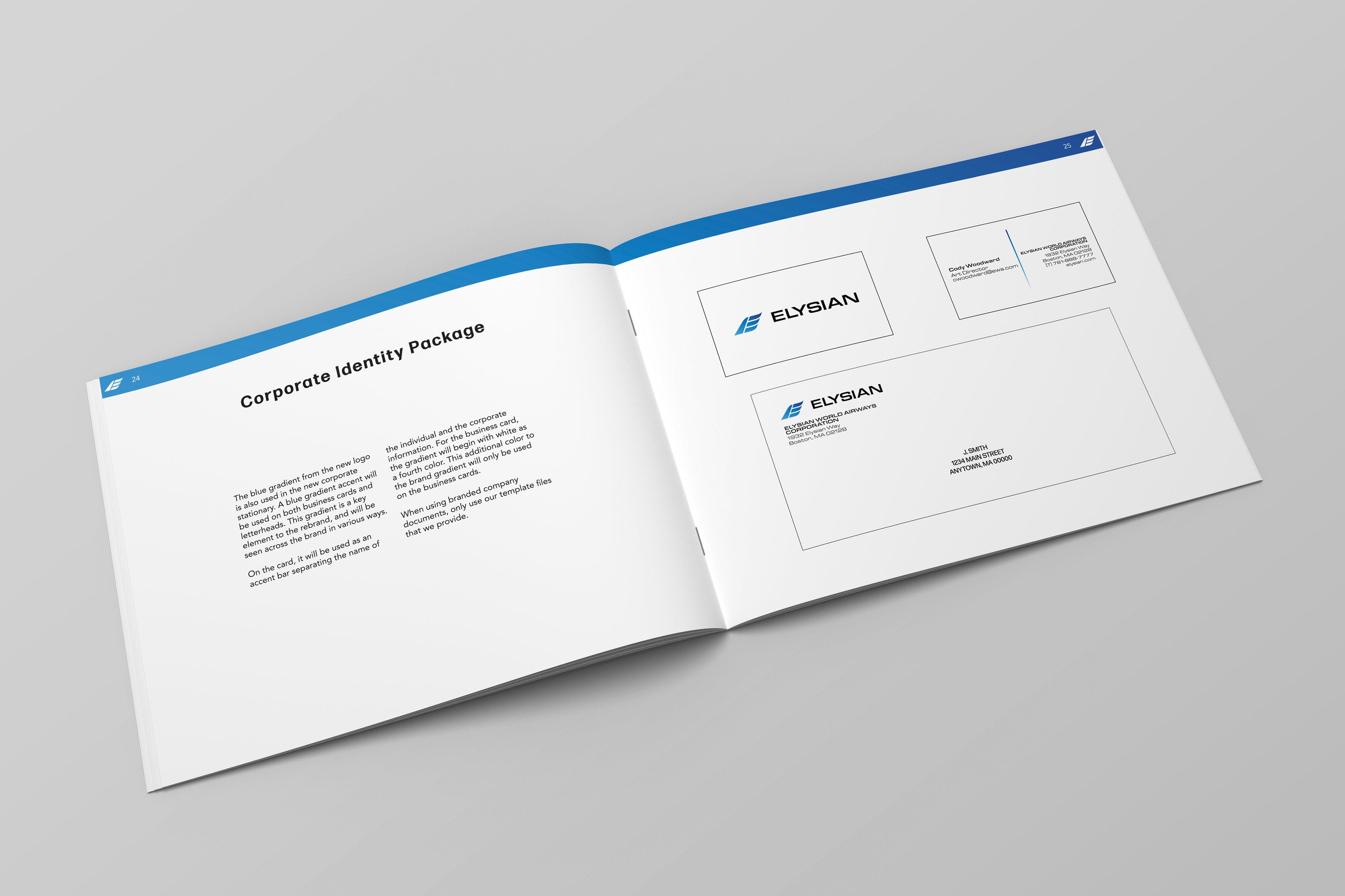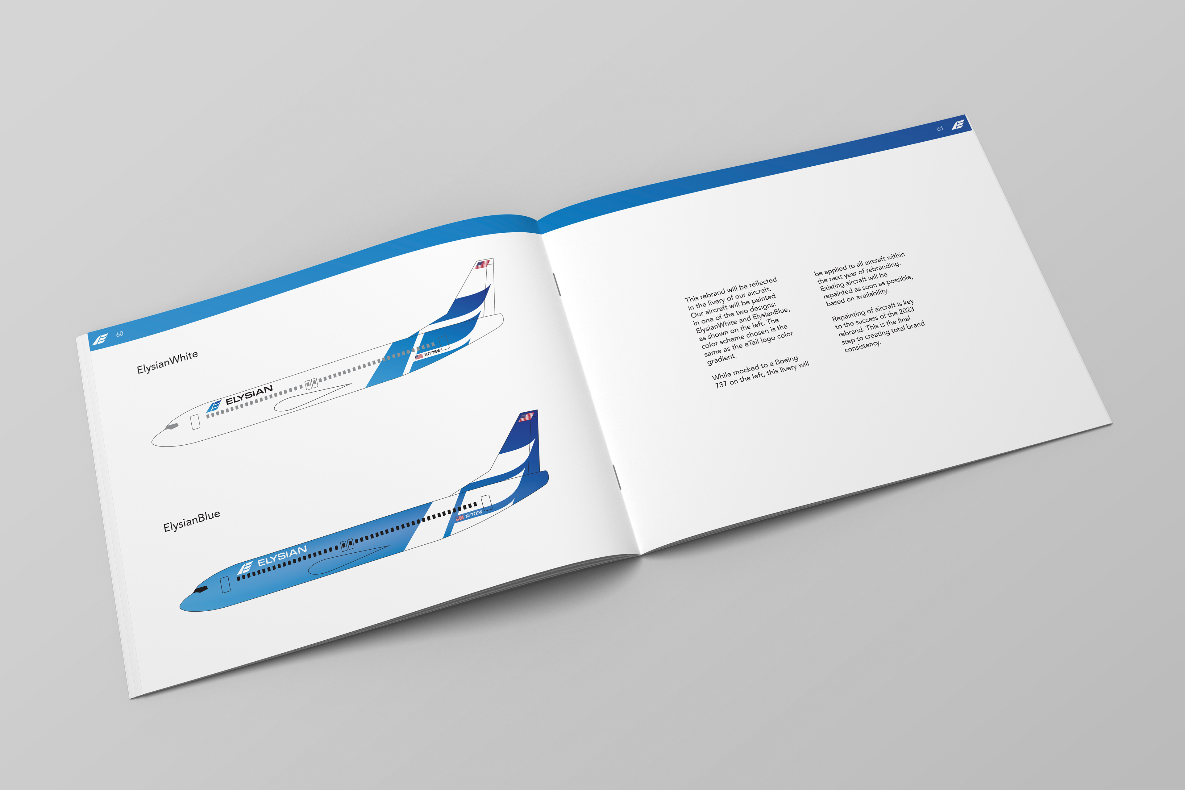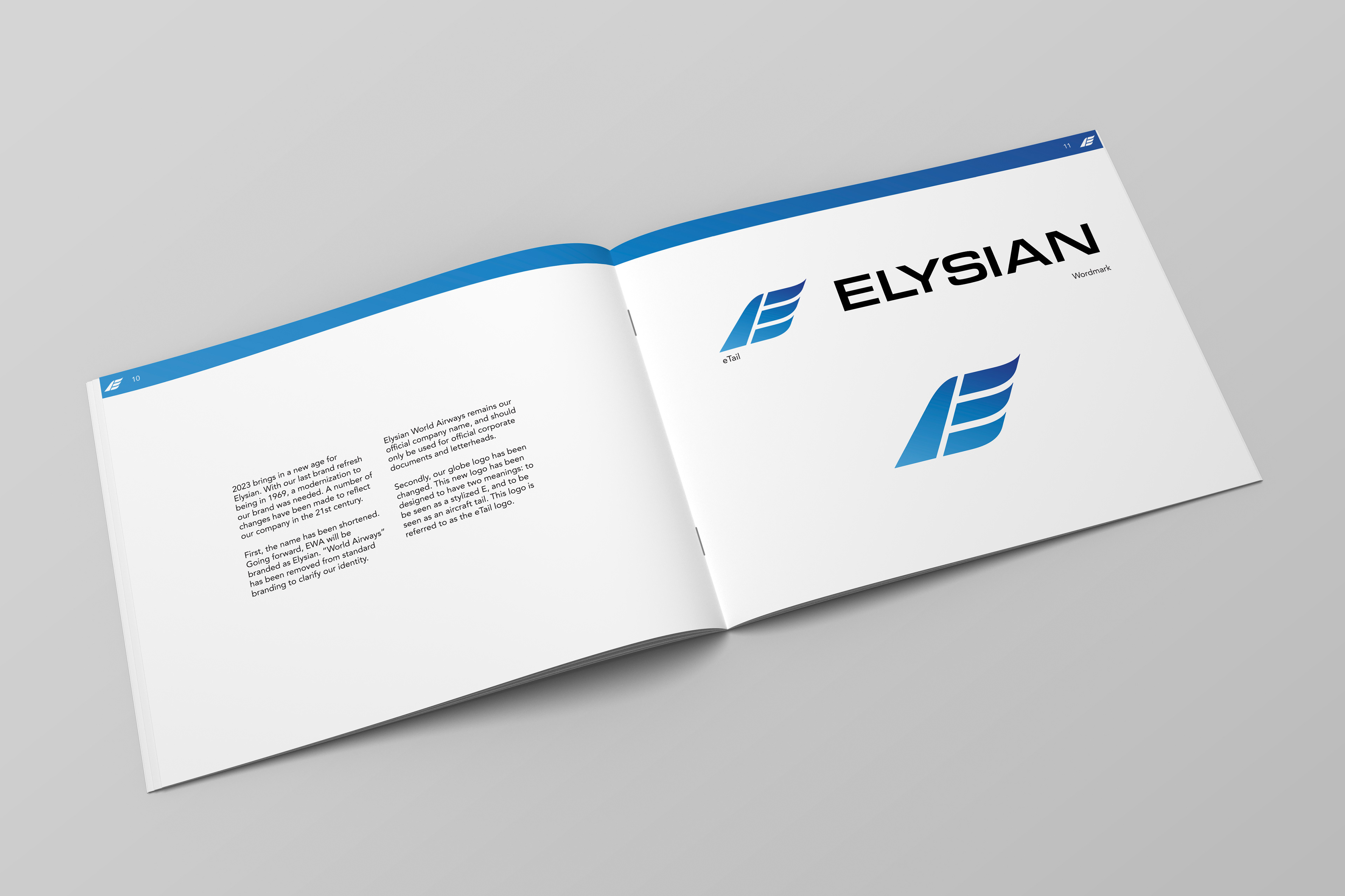 Elysian (formerly known as Elysian World Airways) is a conceptual airline that underwent a rebrandĀ in 2023. This brand standards guide defines the new identity in 63 pages from the logo, credit cards, airport lounge brochures, and aircraft livery.