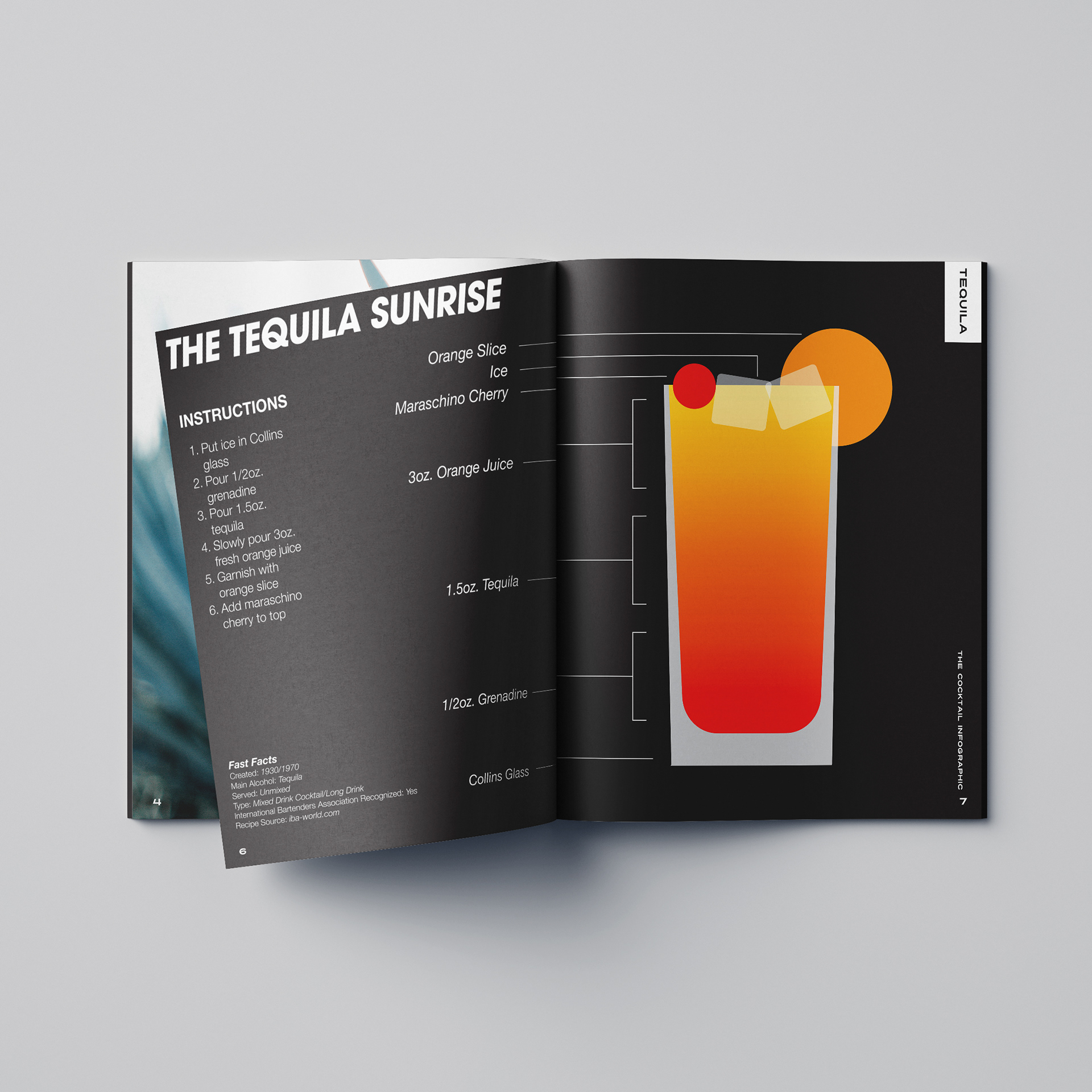 "The Cocktail Infographic" is a cocktail recipe book showcasing recipes for classic and modern cocktails in a technical manner. Breaking down each cocktail in an almost scientific way, this recipe books covers eighteen cocktails made from six categories of spirits.
